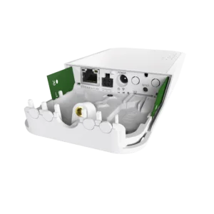 The wAP R is a small weatherproof 2.4Ghz wireless access point with a miniPCI-e slot (so you can use your own LTE card) and LTE antennas. Unit comes with one 10/100 Ethernet LAN port for your wired devices.
