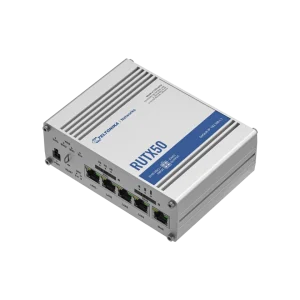 RUTX50 is a dual-SIM multi-network router offering 5G mobile communication for high-speed and data-heavy applications. Together with 5x Gigabit Ethernet ports and dual-band Wi-Fi, it enables reliable data transfer with auto-failover. Backward compatibility and multiple interfaces allow for long-term expandability and upgrading options.