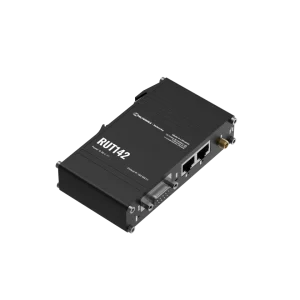 The RUT142 is a compact industrial Ethernet router, enhancing security through network isolation for end devices. Equipped with the RS232 serial interface, two Ethernet ports, DIN rail bracket, and an industrial 3-pin connector, it ensures seamless connectivity and easy installation. The router comes with RutOS, Wi-Fi 4, and supports industrial protocols such as Modbus, DLMS, DNP3, and OPC UA, and is compatible with RMS for efficient remote and on-site management.