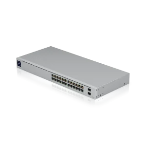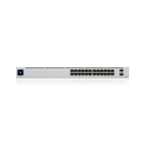 The Switch 24 (USW 24) is a fully managed, fanless switch with (24) GbE RJ45 ports and (2) 1G SFP ports. The versatile USW 24 provides Gigabit links to Ethernet devices while also supplying Gigabit fiber uplink options fit for an enterprise network. The switch also offers an extensive suite of Layer 2 switching protocols, including port-specific operation modes (switching, mirroring, or aggregate), and features a 1.3″ LCM color touchscreen that concisely displays key system and connection insights. This switch can also be monitored or configured from anywhere with the powerful, intuitive UniFi Network web application and mobile app.